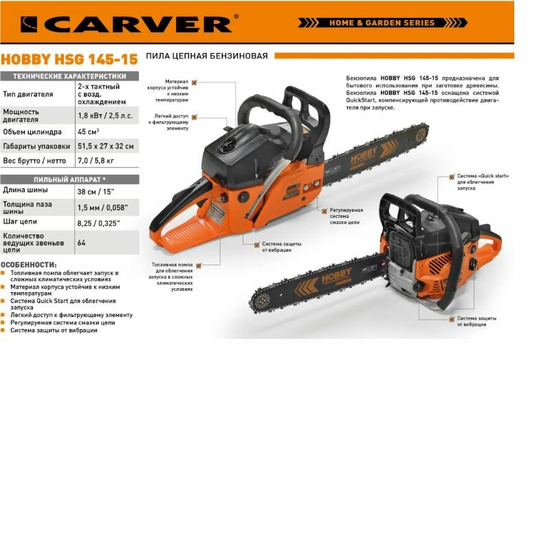 Бензопила CARVER HOBBY HSG 145-15 интересное: