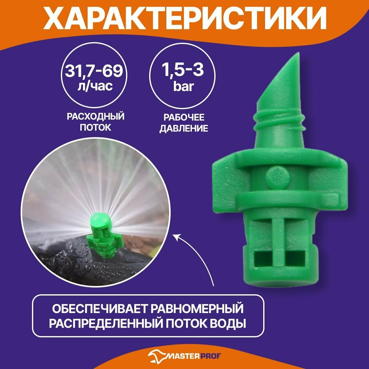 СохранитьМикроджет рефракционный, сектор полива 180 градусов, зеленый, радиус 0,9-1,3м, расход 30-55л/ч при давлении 1,5-3 bar (100 шт) интересное: