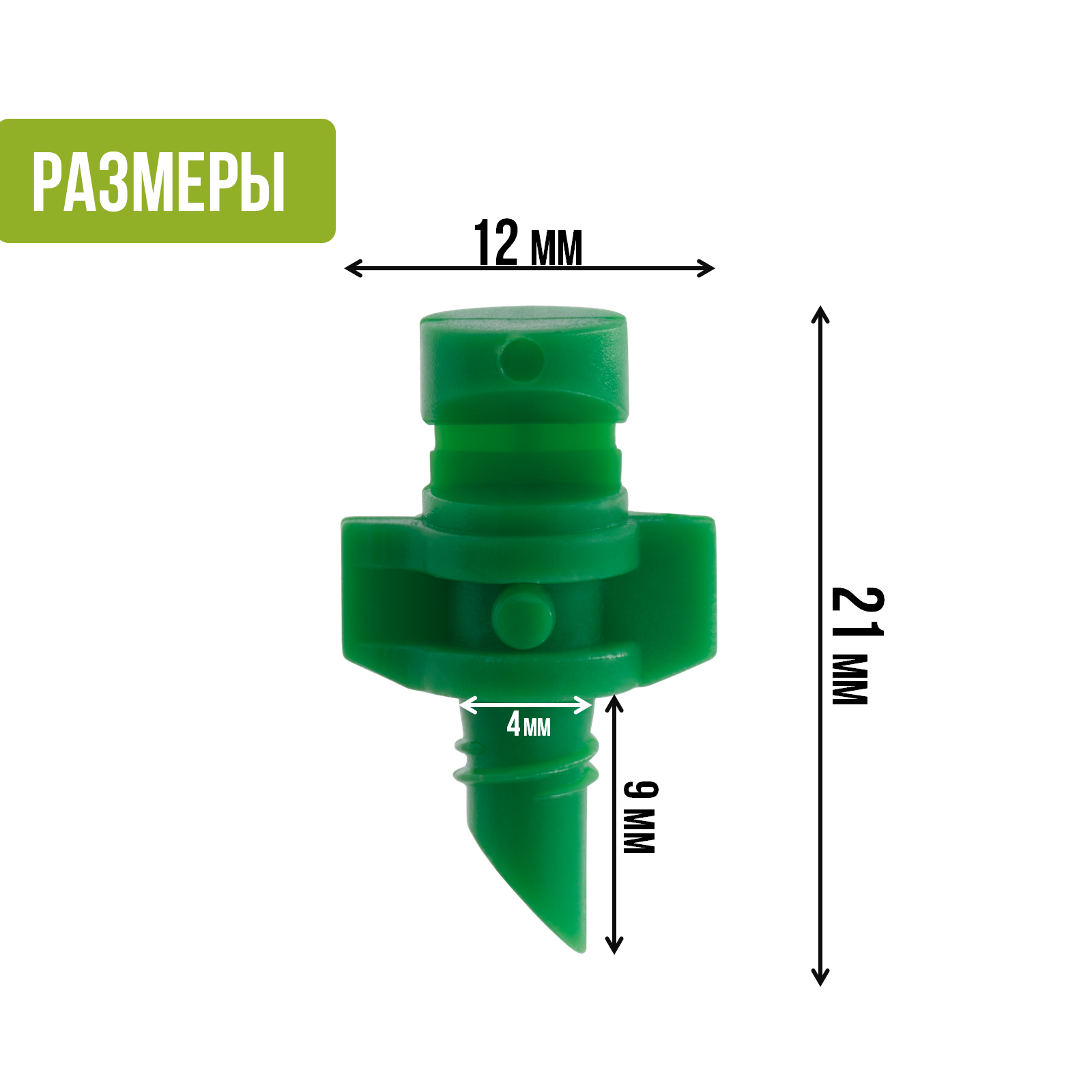 Микроджет рефракционный, сектор 180 градусов, зеленый, радиус 0,9-1,3м, расход 30-55л/ч при давлении 1,5-3 bar - 100 шт