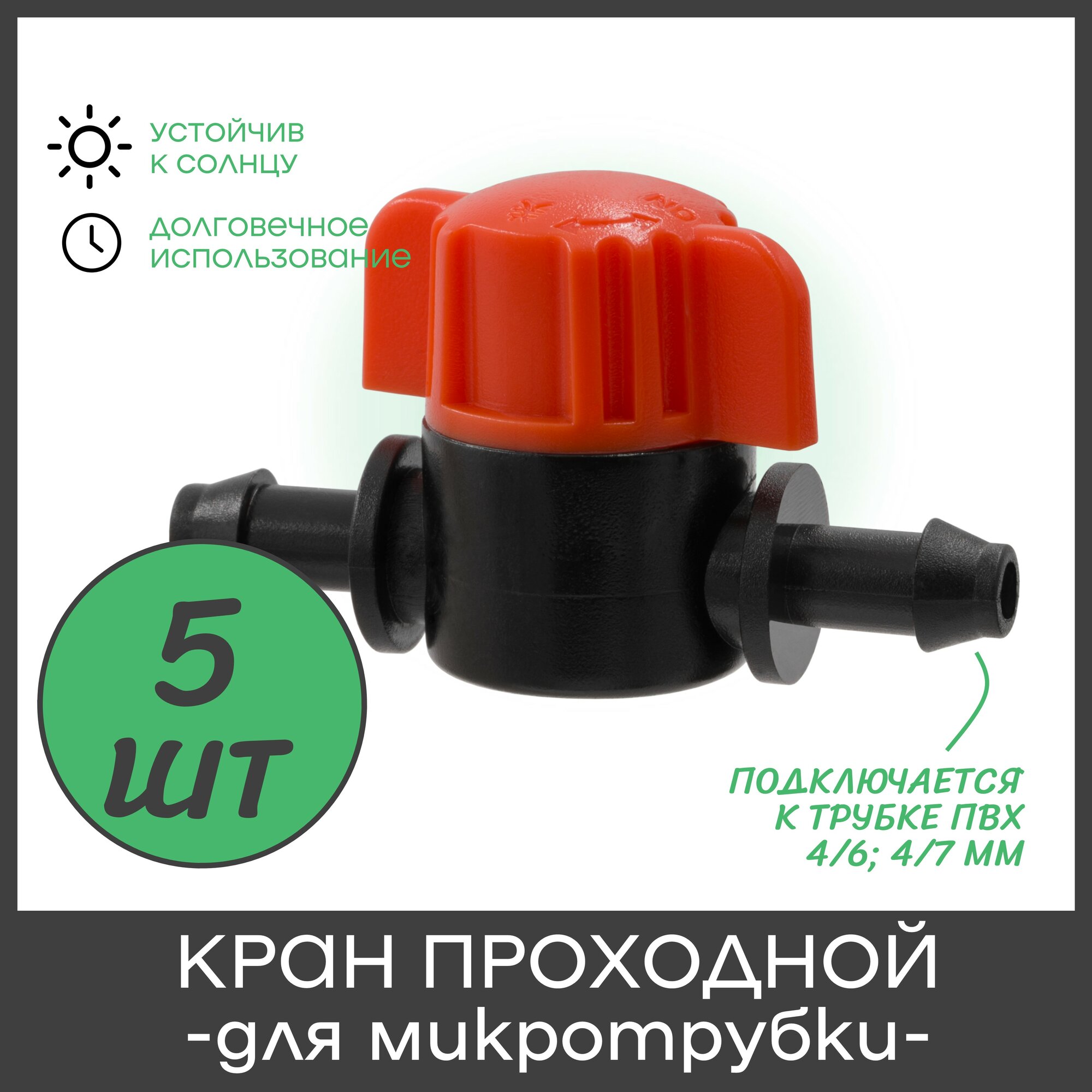 Кран проходной для микротрубки ПВХ 4/6мм или 4/7мм (1/4") - 5 штук