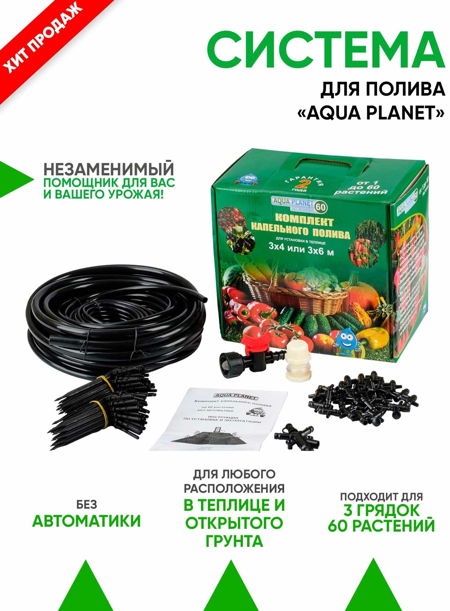 Система полива без автоматики Aqua Planet на 60 растений, капельный полив для теплицы и открытого грунта интересное: