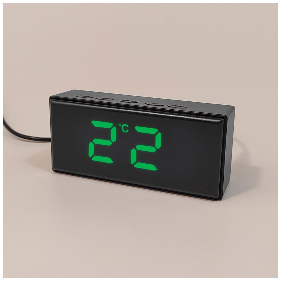 Часы электронные цифровые настольные мини с будильником, термометром и календарем (прмт-103252) зеленая подсветка интересное: