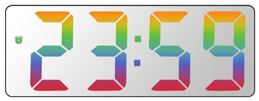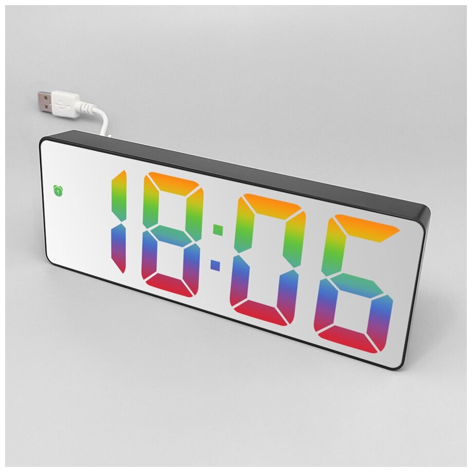 Купить Часы электронные цифровые настольные с будильником, термометром и календарем (прмт-103271) разноцветная подсветка (зеркальные, чёрный корпус)