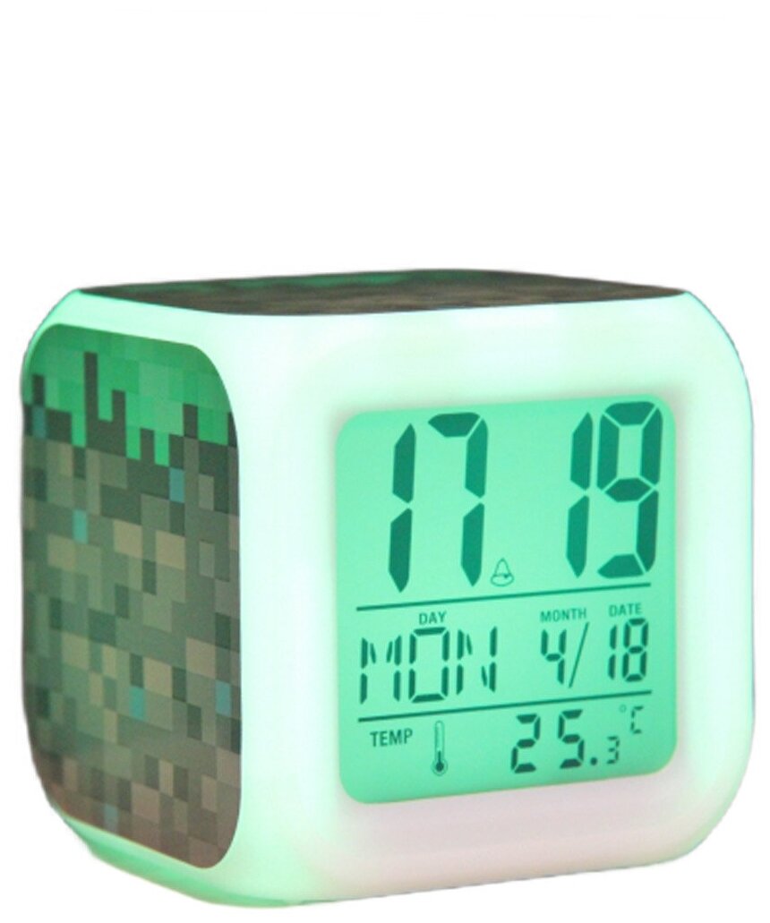 Настольные часы будильник Майнкрафт Блок Земли Minecraft подсветка 7,7 см