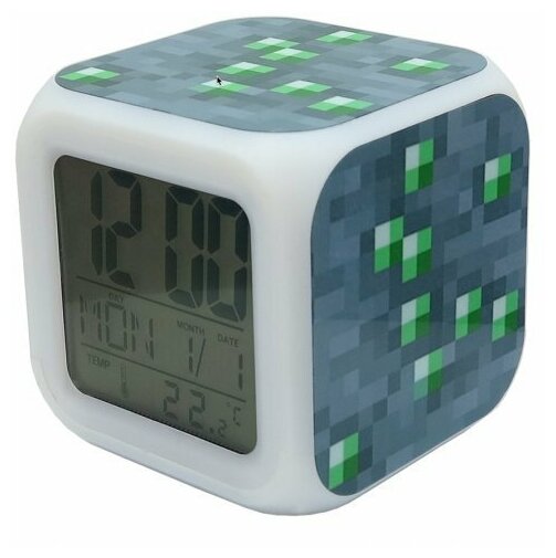 Часы-будильник хамелеон Майнкрафт "Изумрудная руда" интересное: