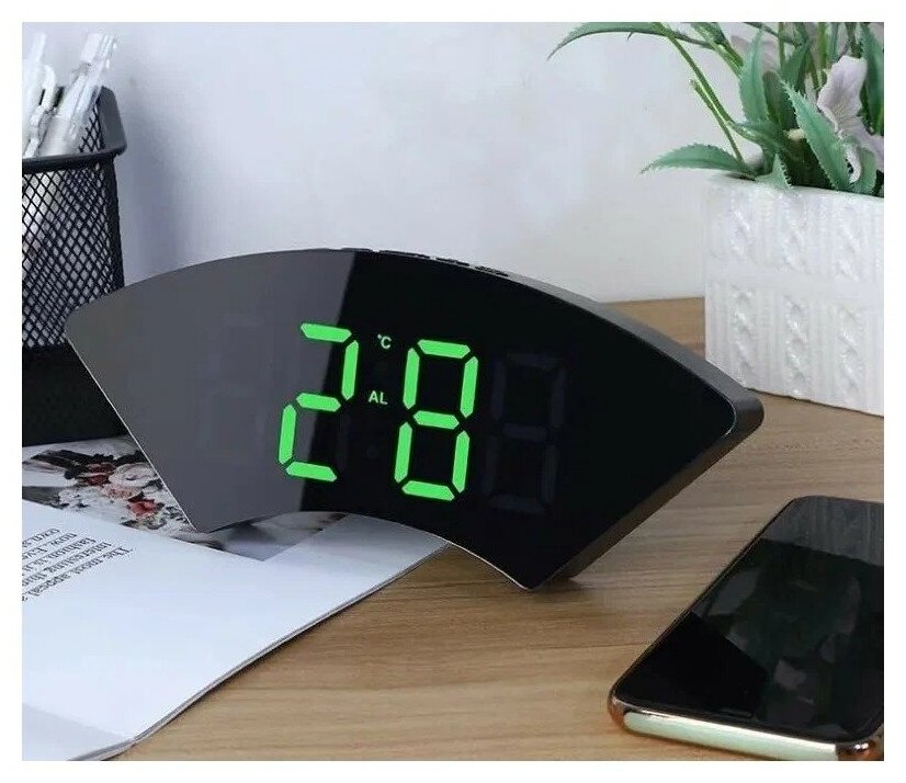 Часы электронные настольные большие с крупными цифрами/ Будильник настольный/ Часы зеркальные интересное: