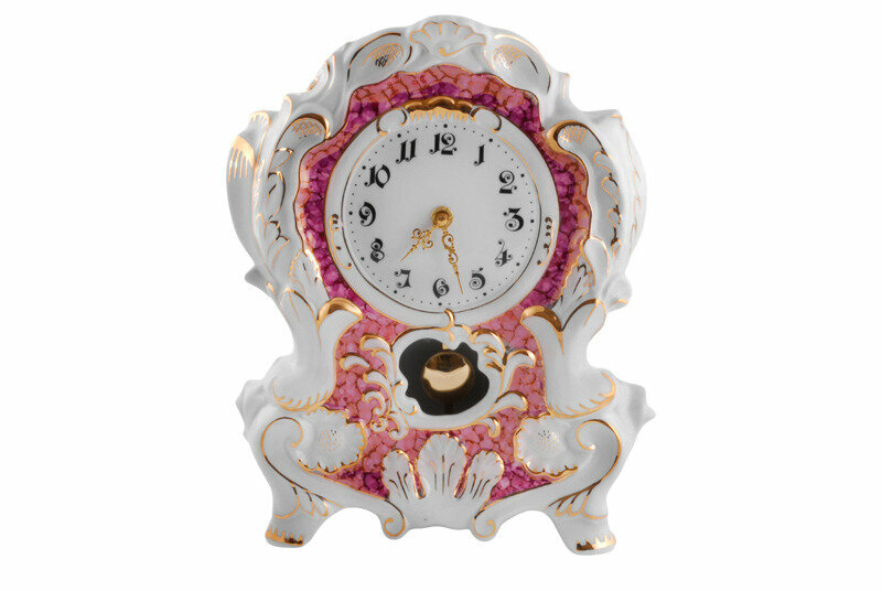 Часы каминные 32 см. Розовый мрамор, отводка золото интересное: