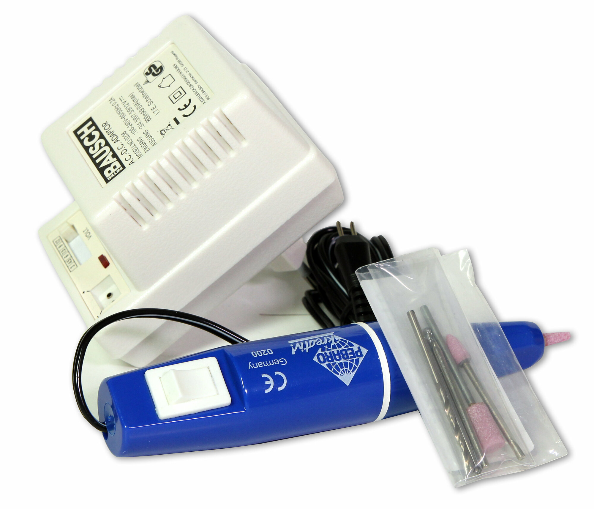 | Комплектация | мини-дрель, источник питания со ступенчатой регулировкой напряжения 3-12 Вольт, 7 насадок (3 абразивные, 1 шаровидный алмазный бор, 2 бор-фрезы,1 сверло HSS 2.3 мм) |