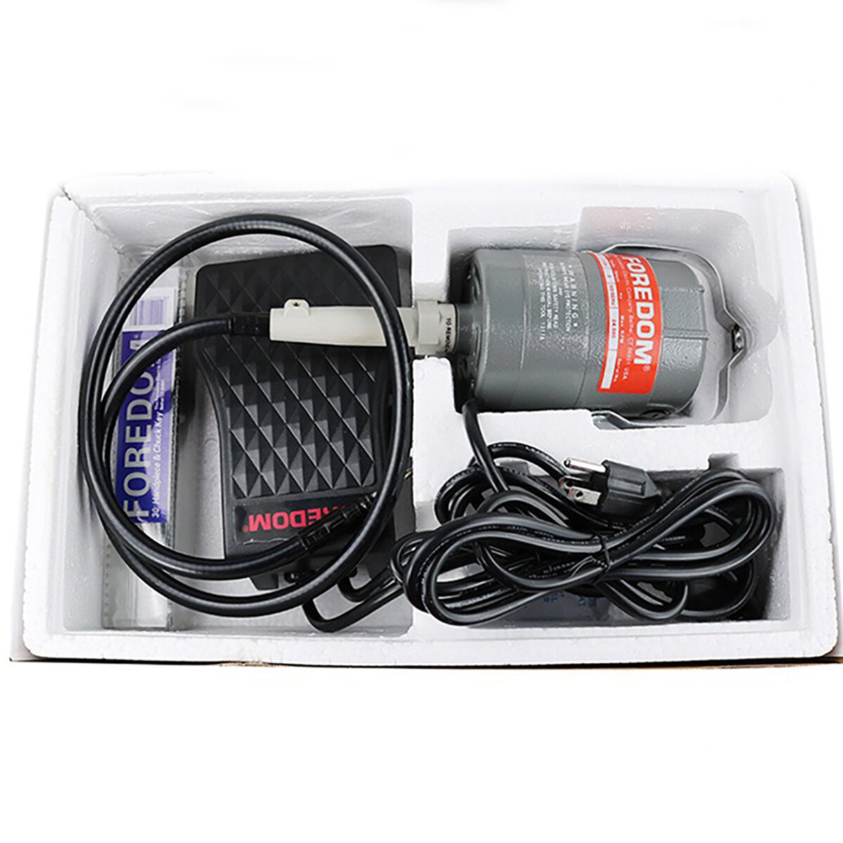 | Комплектация | электродвигатель серии СС; гибкий рукав с защитной прорезиненной оплеткой, длина - 1 м; педаль реостата; наконечник FOREDOM № 30 (трехкулачковый) |