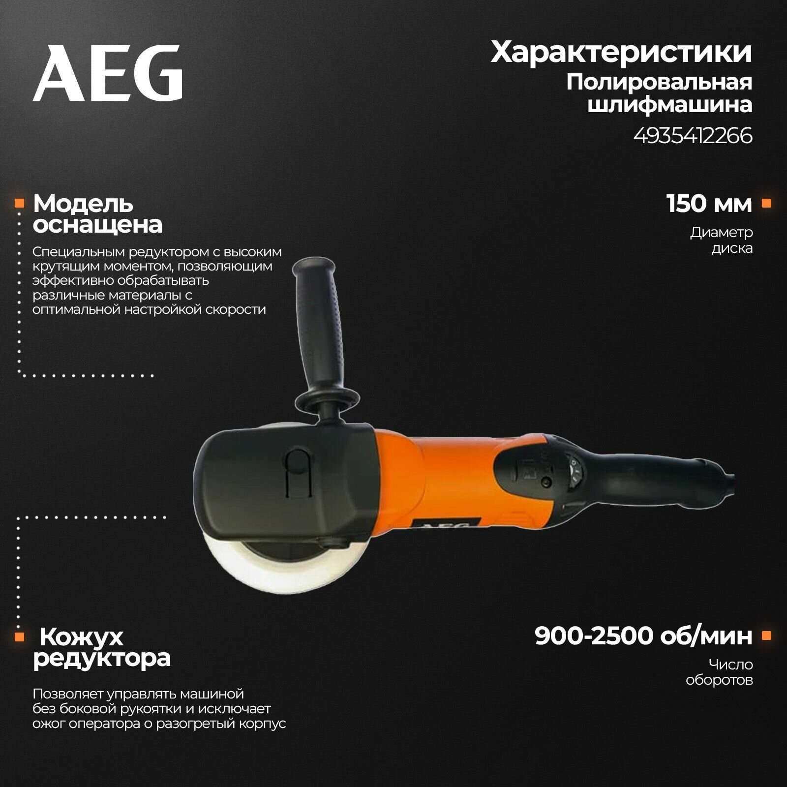 Полировальная шлифмашина Aeg PE 150 4935412266 интересное: