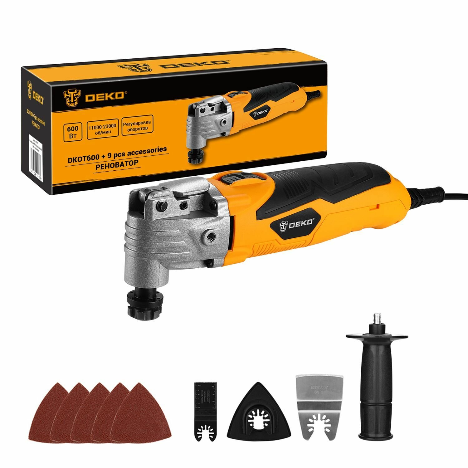 Реноватор быстрозажимной DEKO DKOT600+набор предметов 9 шт, 600 Вт