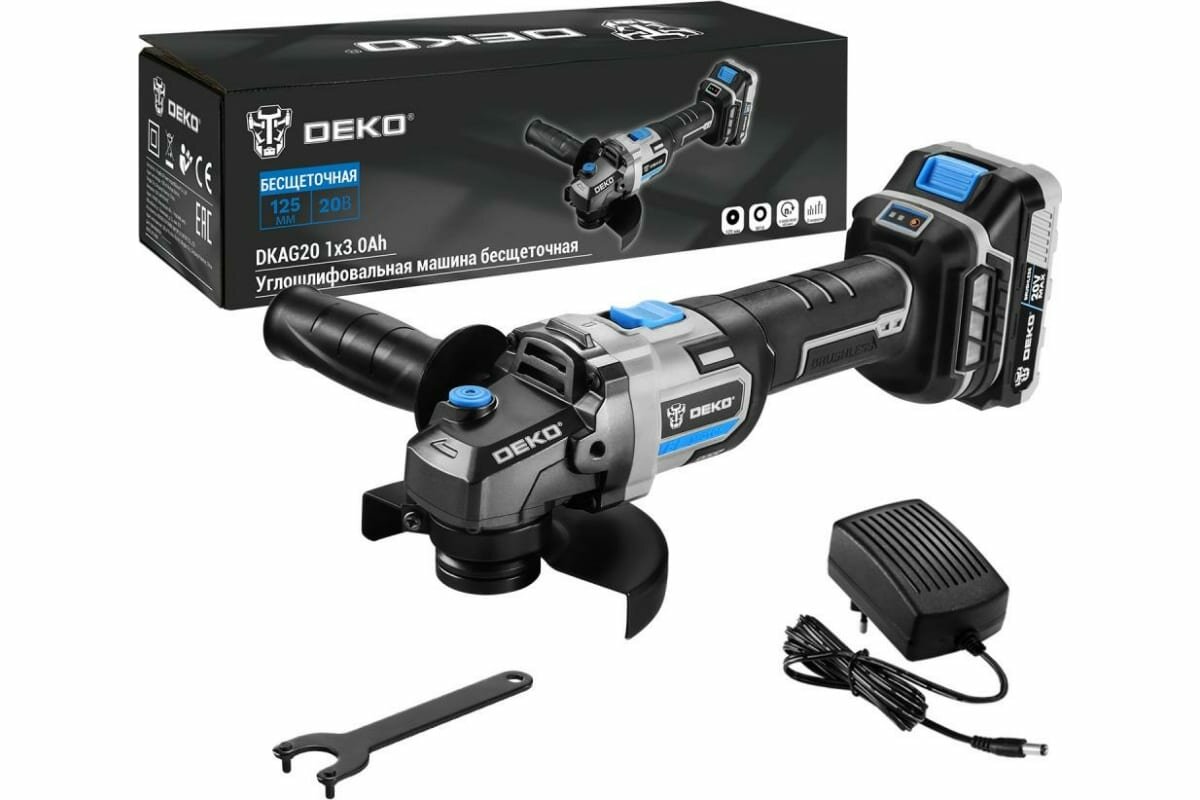 DEKO Углошлифовальная машина бесщеточная DKAG20, 20В, 1*3.0Ач 063-4026