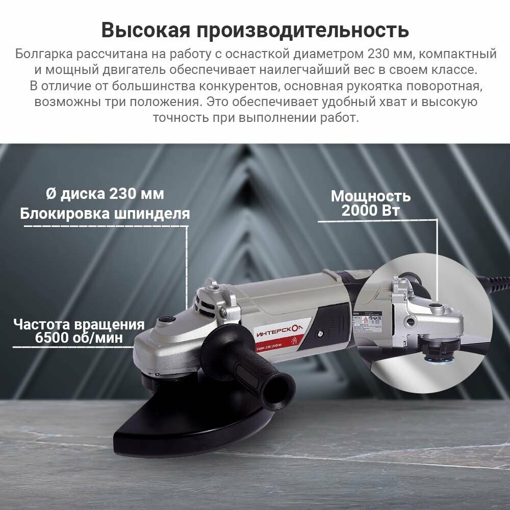 Углошлифовальная машина Интерскол УШМ-230/2000М, 2000 Вт, 6500 об/мин