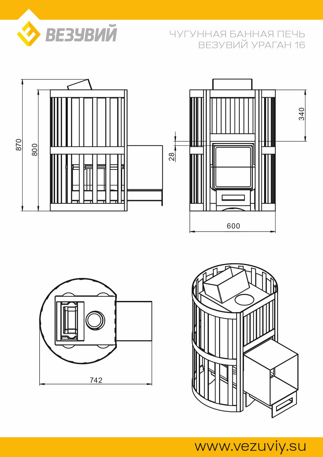 Печь везувий Ураган Ковка 16 Панорама "М"