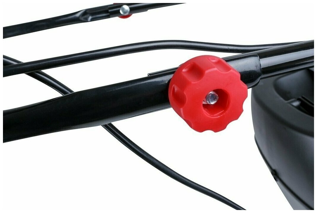 | Минусы: | На второй день эксплуатации сломался регулятор высоты скашивания, вылетела ручка. |