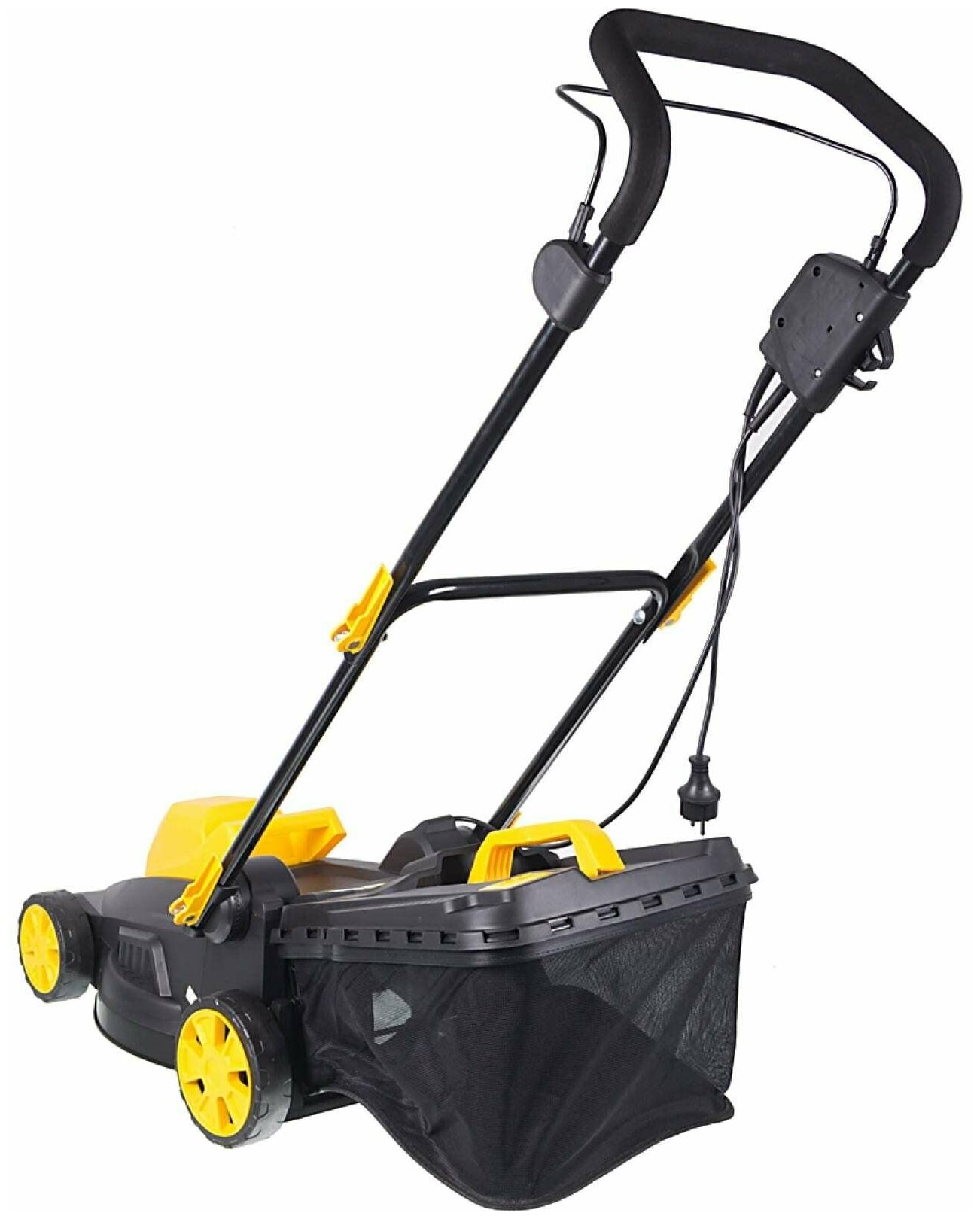 | Плюсы: | Недорогая модель, мощная, тихо работает, большой отсек для срезанной травы, управление расположено на ручке |