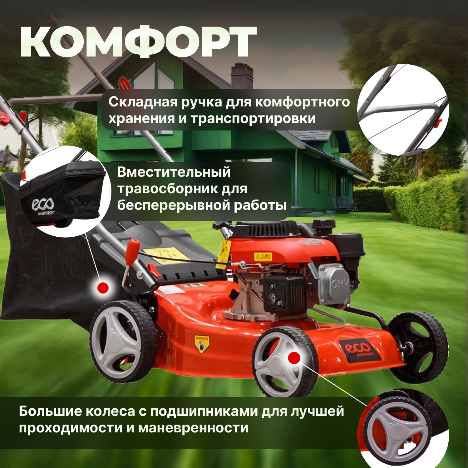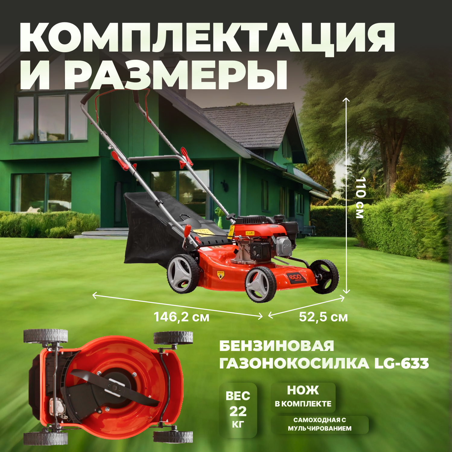 СохранитьГазонокосилка бензиновая ECO LG-533 интересное: