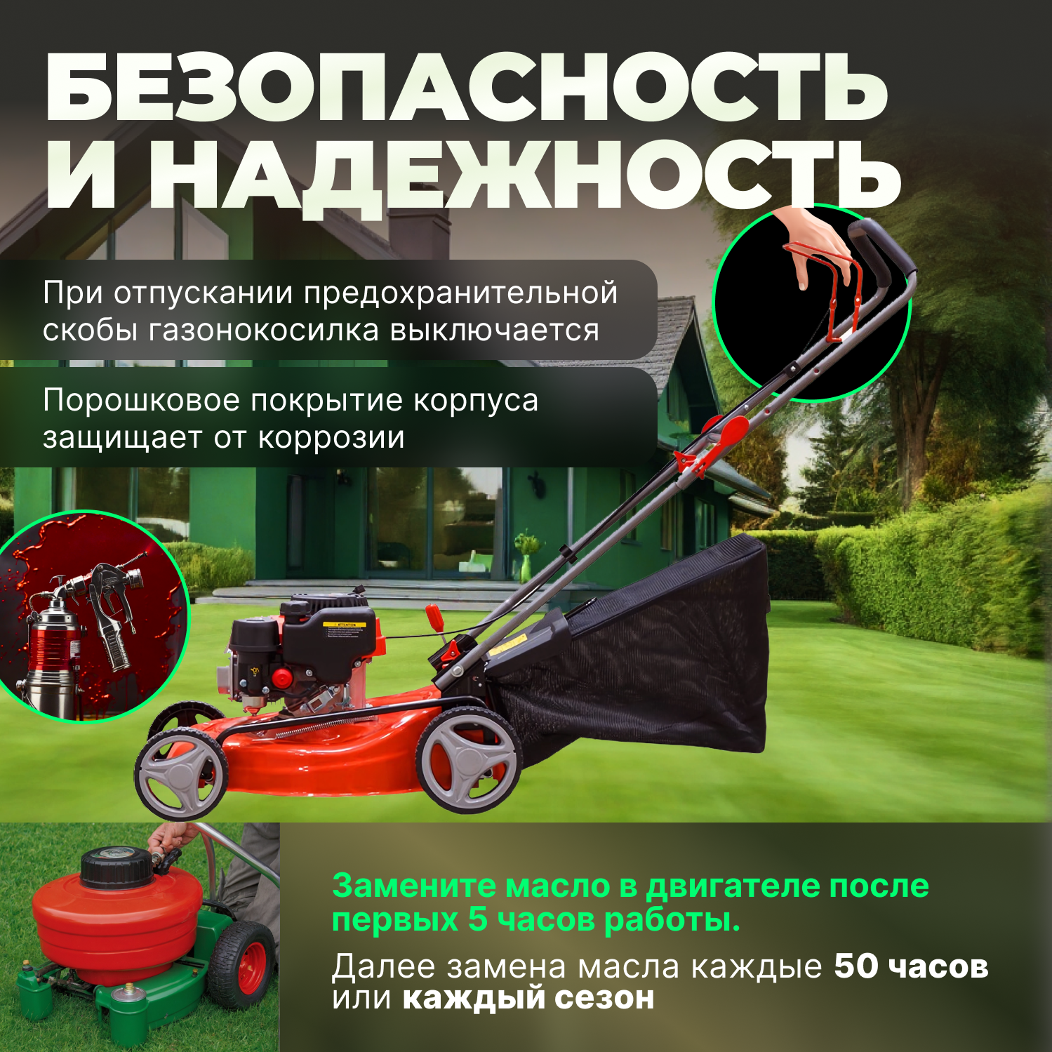 | Минусы: | Для высокой травы слабовата. Поддерживать газон в идеальном состоянии годится. |