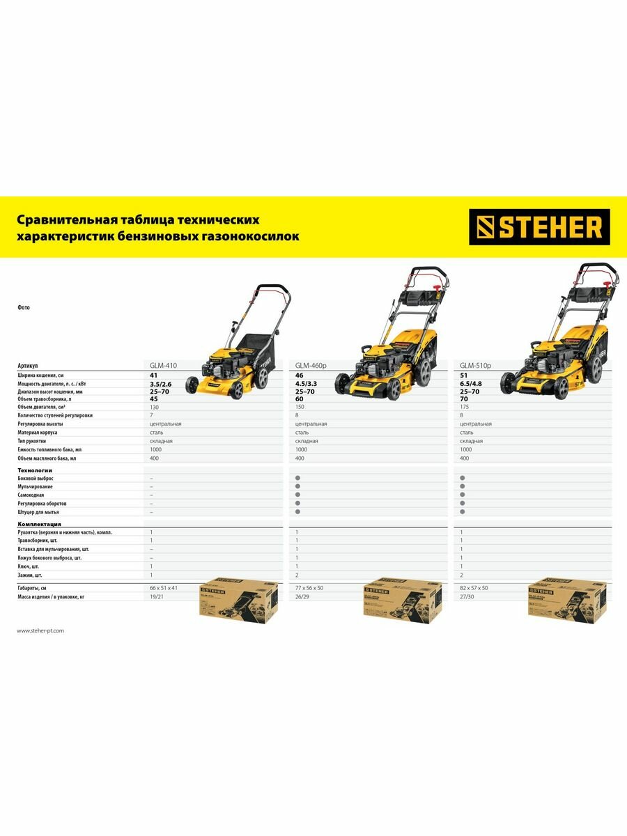 СохранитьСамоходная бензиновая газонокосилка STEHER GLM-460p интересное:
