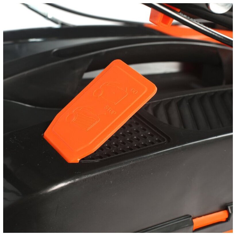 | Минусы: | Бесполезная мульчирующая насадка, нет регулировки скорости хода. |