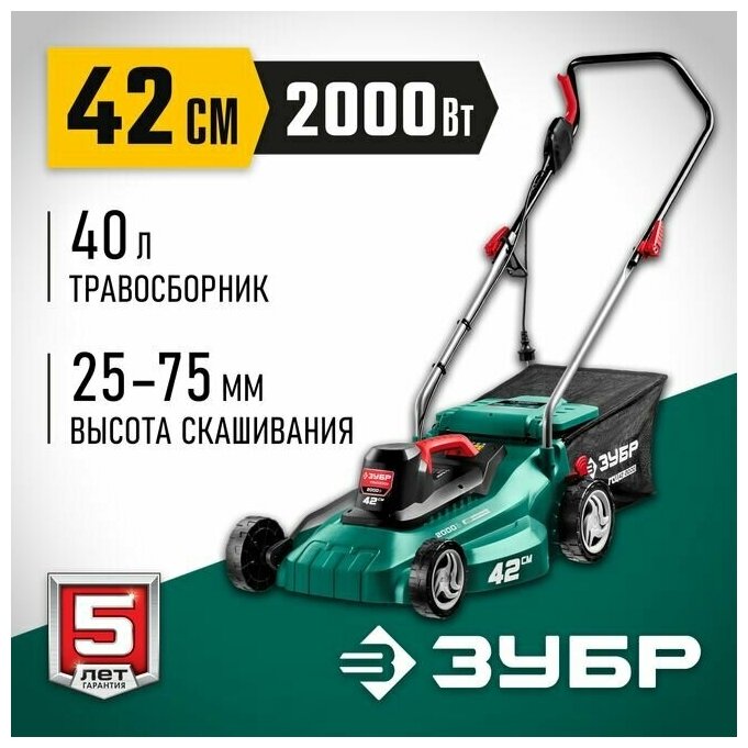 ЗУБР 2000 Вт газонокосилка сетевая, ш/с 42 см ГСЦ-42-2000 интересное: