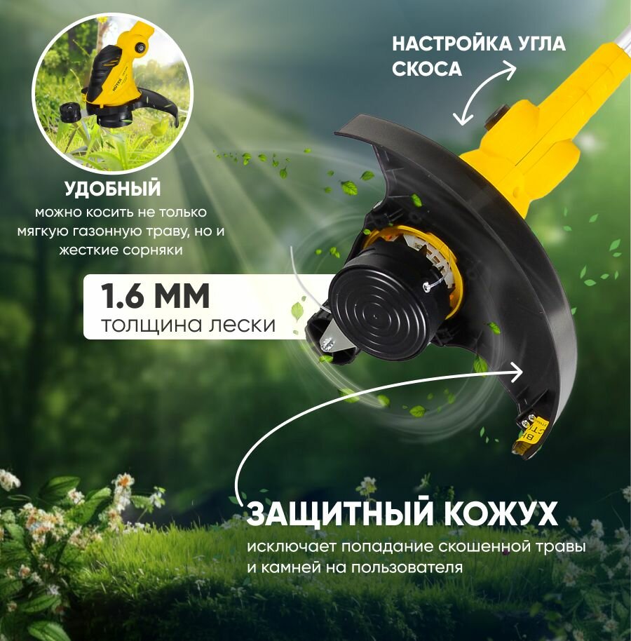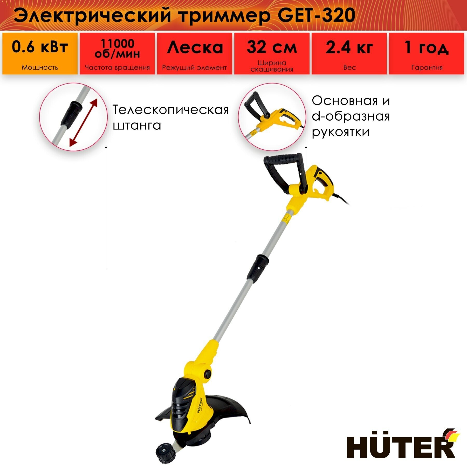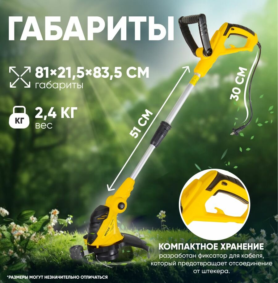 Электрический триммер / электротриммер HUTER GET-24 (350 ВТ) (350 Вт, 10000 об/мин, скашивание леской - 240 мм, Ø – 1.2 мм, 2 кг)