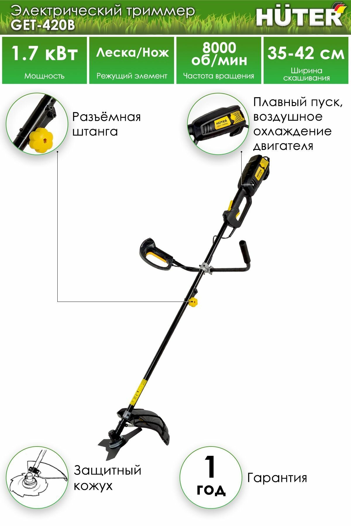 Электрический триммер Huter, GET-420B, 1700 Вт, верхнее расположение двигателя