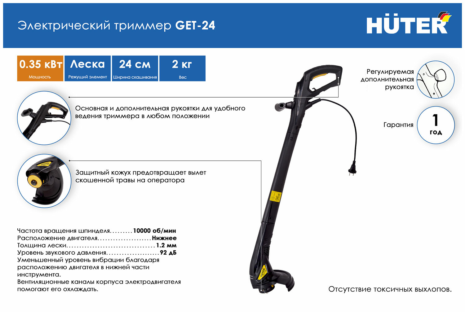 Триммер электрический Huter GET-24 серо-желтый интересное: