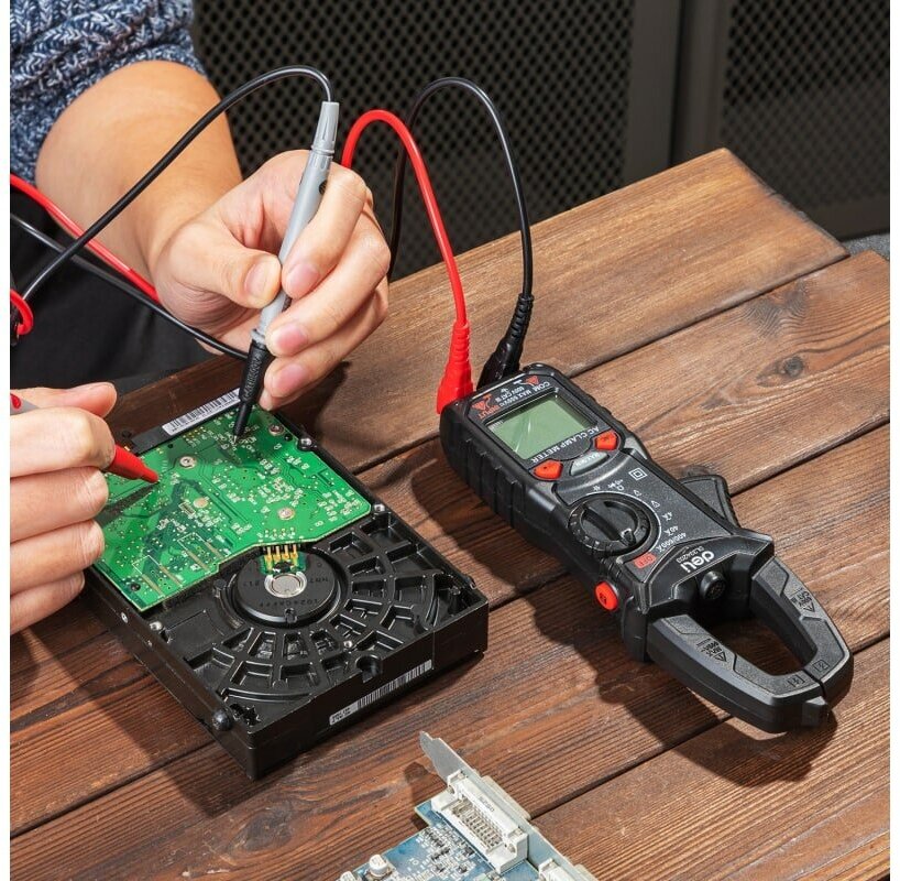Токоизмерительные цифровые клещи DELI DL334203, раскрытие клещей 30 мм, CAT III 600В, 600А, 40 мОм 102980