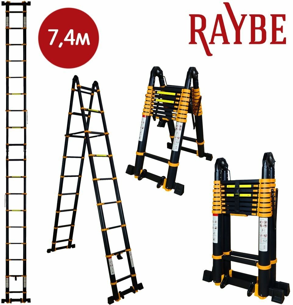 Лестница телескопическая 3,7м+3,7м Raybe RM740 7,4 м интересное: