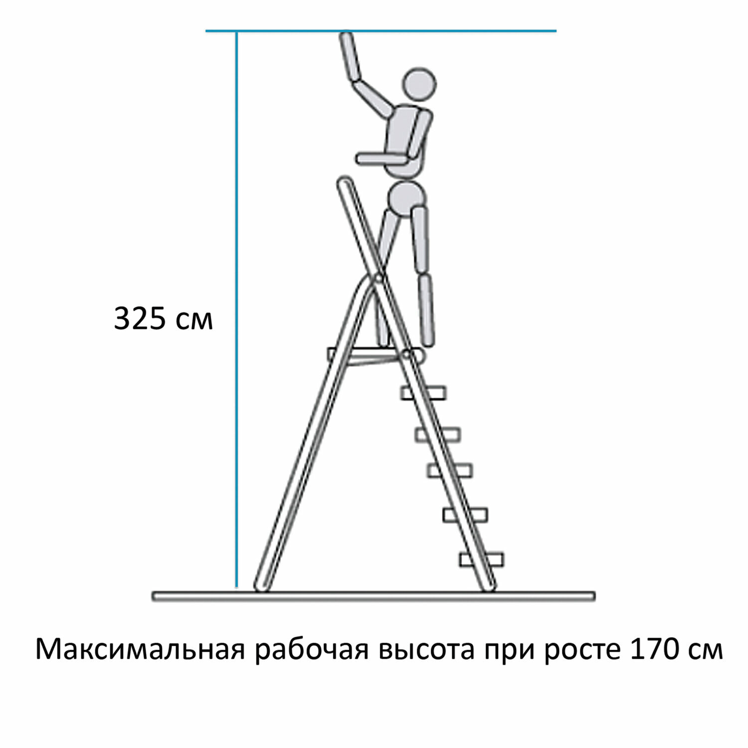 Стремянка сталь / алюминий 6 ступени, высота площадки 1,25м, дуга 0,6м, площадка 26*26см, нагрузка 150кг, вес 7кг новая высота, 1130106