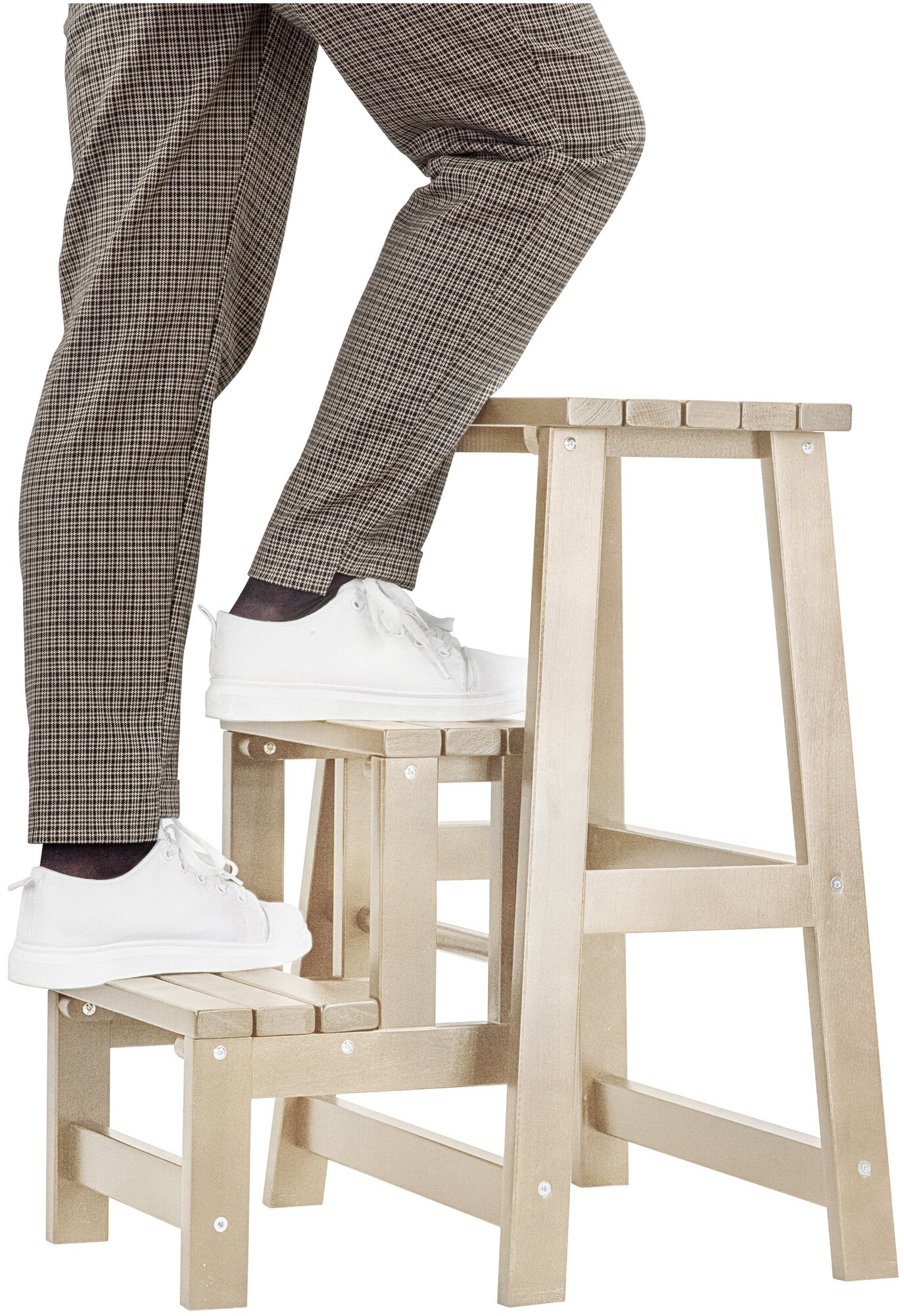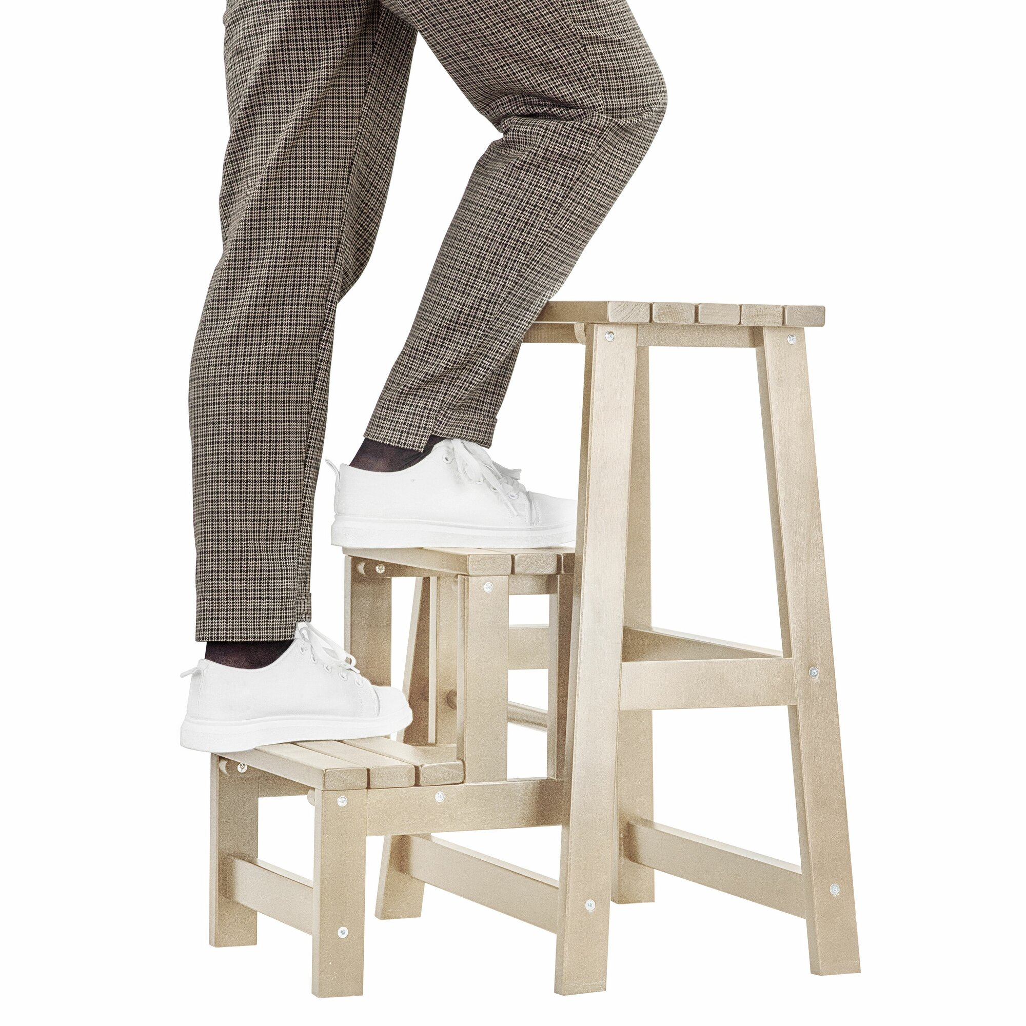 | Плюсы: | Красивая незаменимая стремянка на кухне да и вообще в квартире. Компактная, покрыта лаком, легко оттирается грязь. |