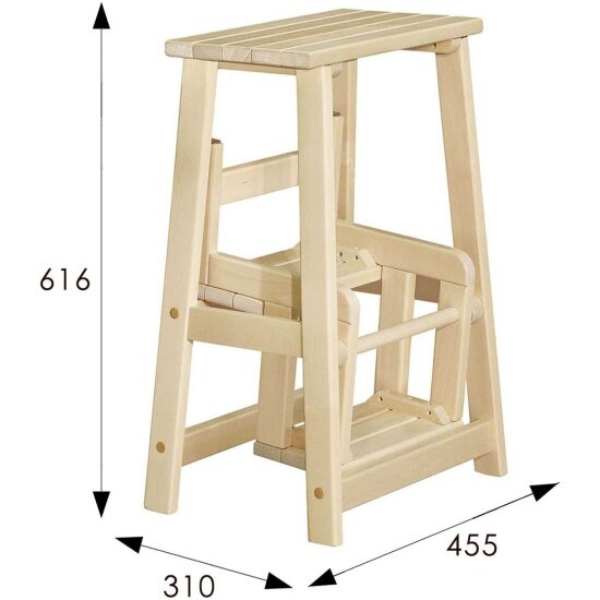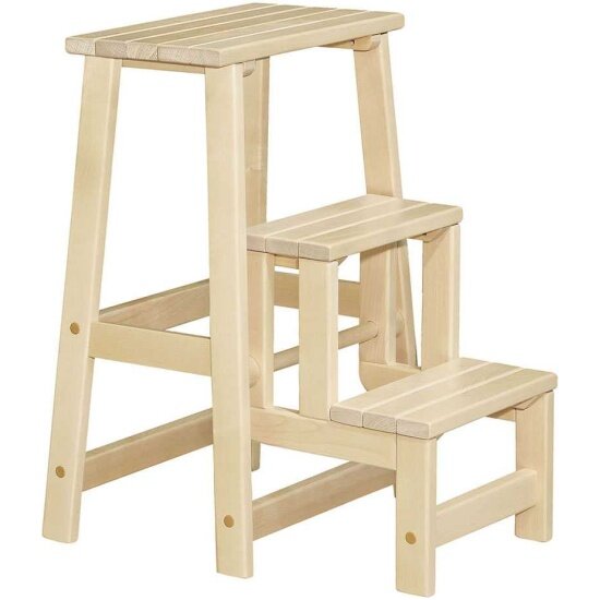 | Плюсы: | Красивая незаменимая стремянка на кухне да и вообще в квартире. Компактная, покрыта лаком, легко оттирается грязь. |