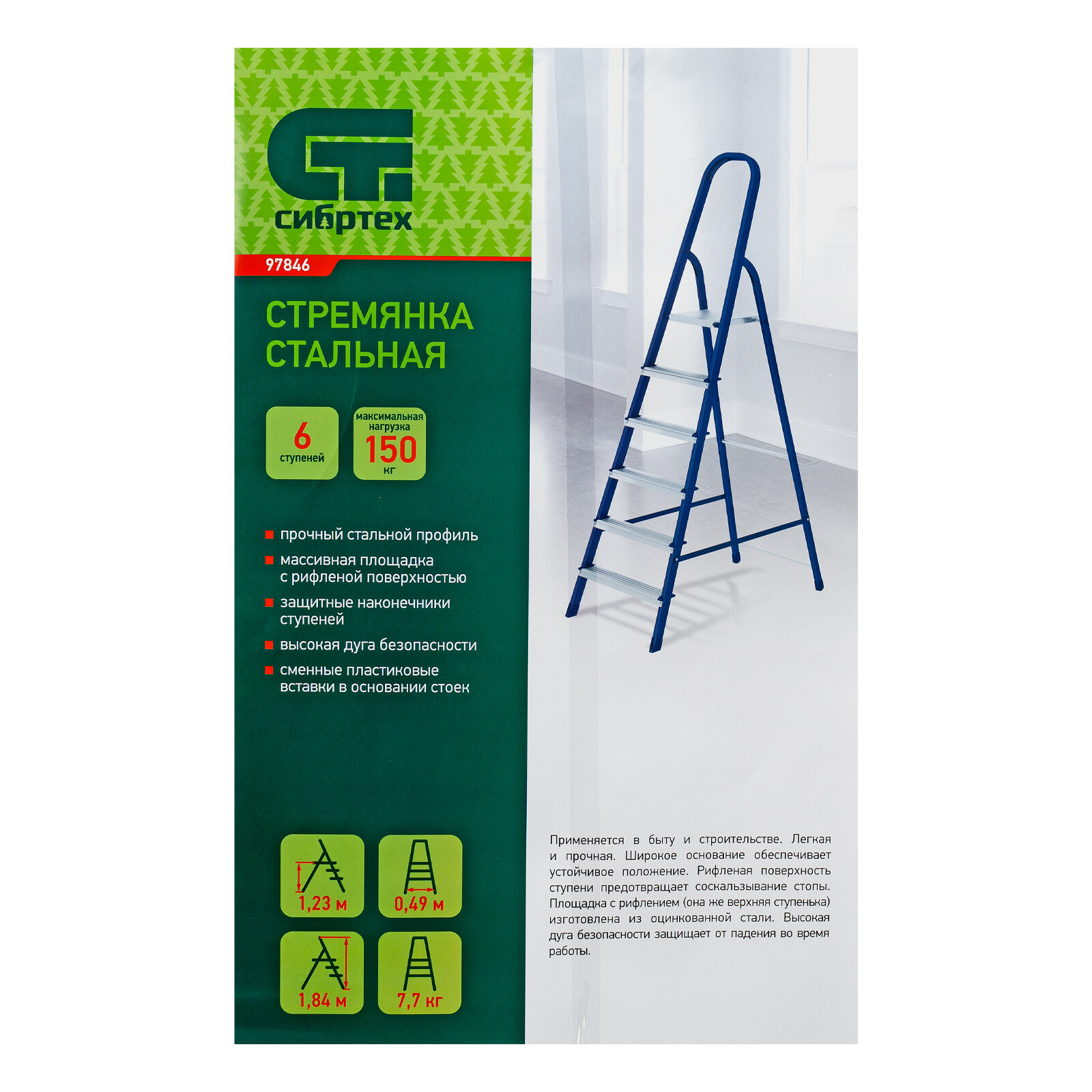 Стремянка 6 ступеней стальная Россия Сибртех 97846 (Лестницы, стремянки)