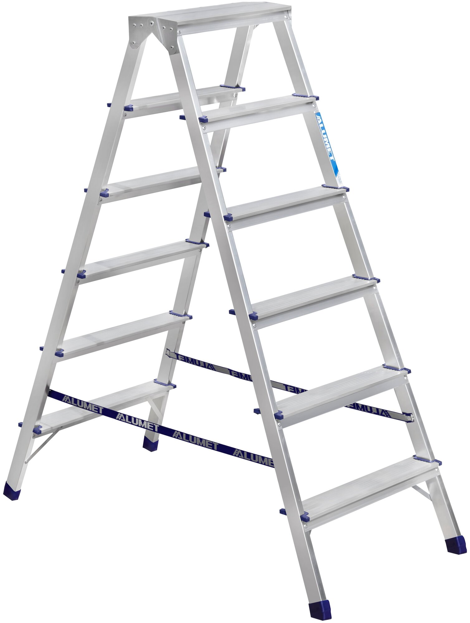 Стремянка двухсторонняя Alumet AD7206, алюминиевая, 2 x 6 ступеней, 1,37 м