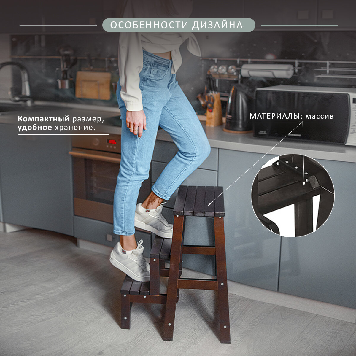 Табурет стремянка Массив Элегия, орех