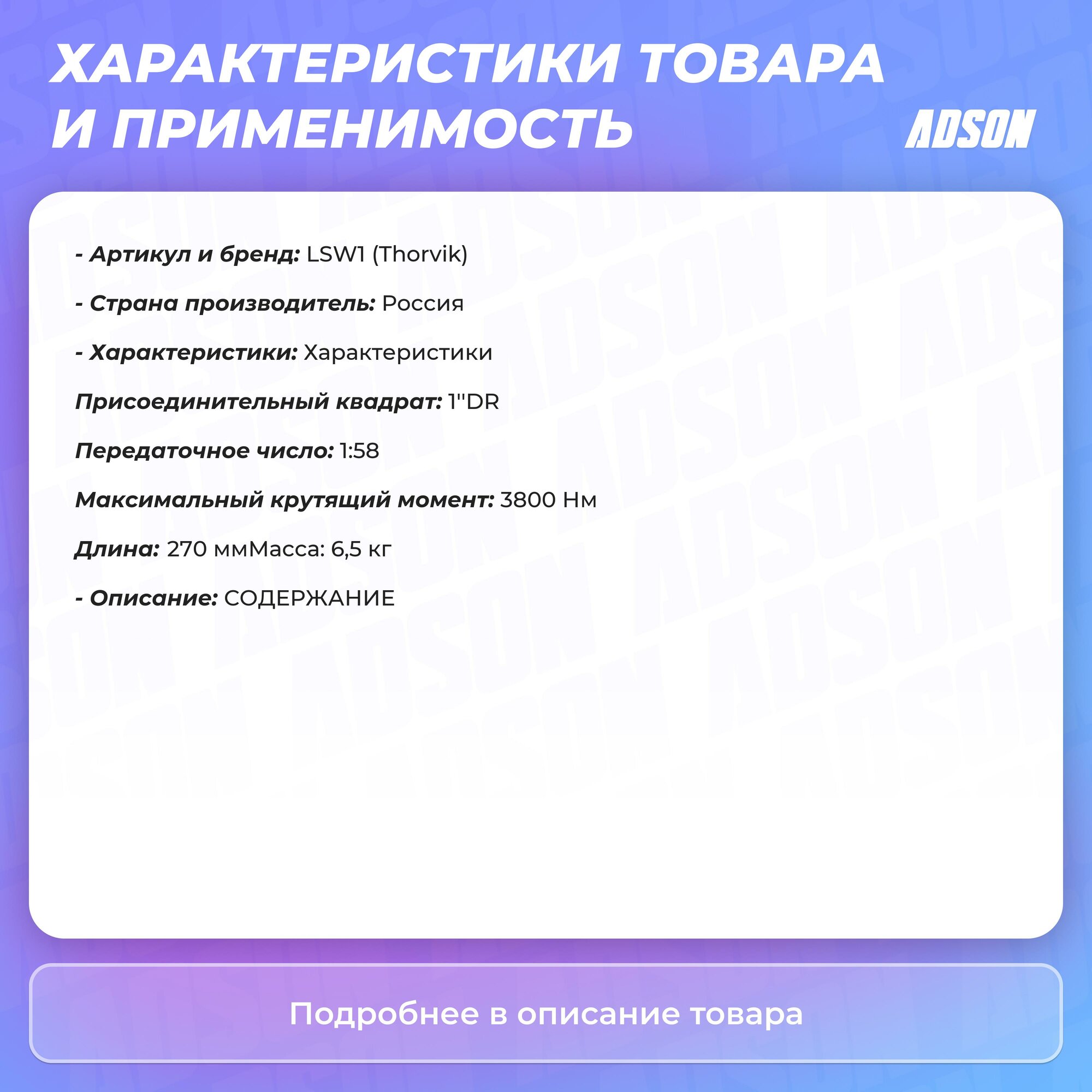 THORVIK LSW1 Гайковерт ручной механический 1DR, 3800 Нм интересное: