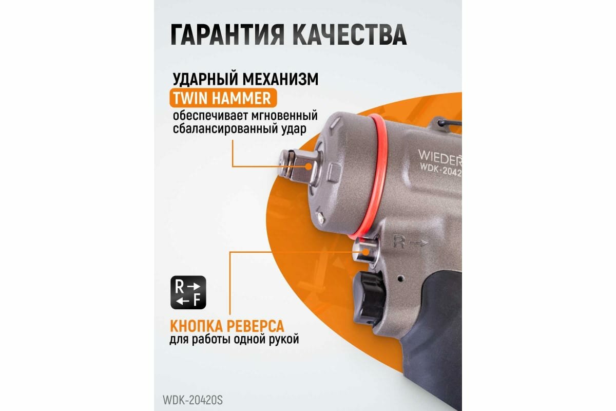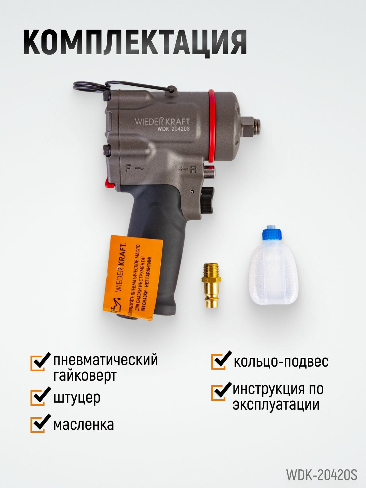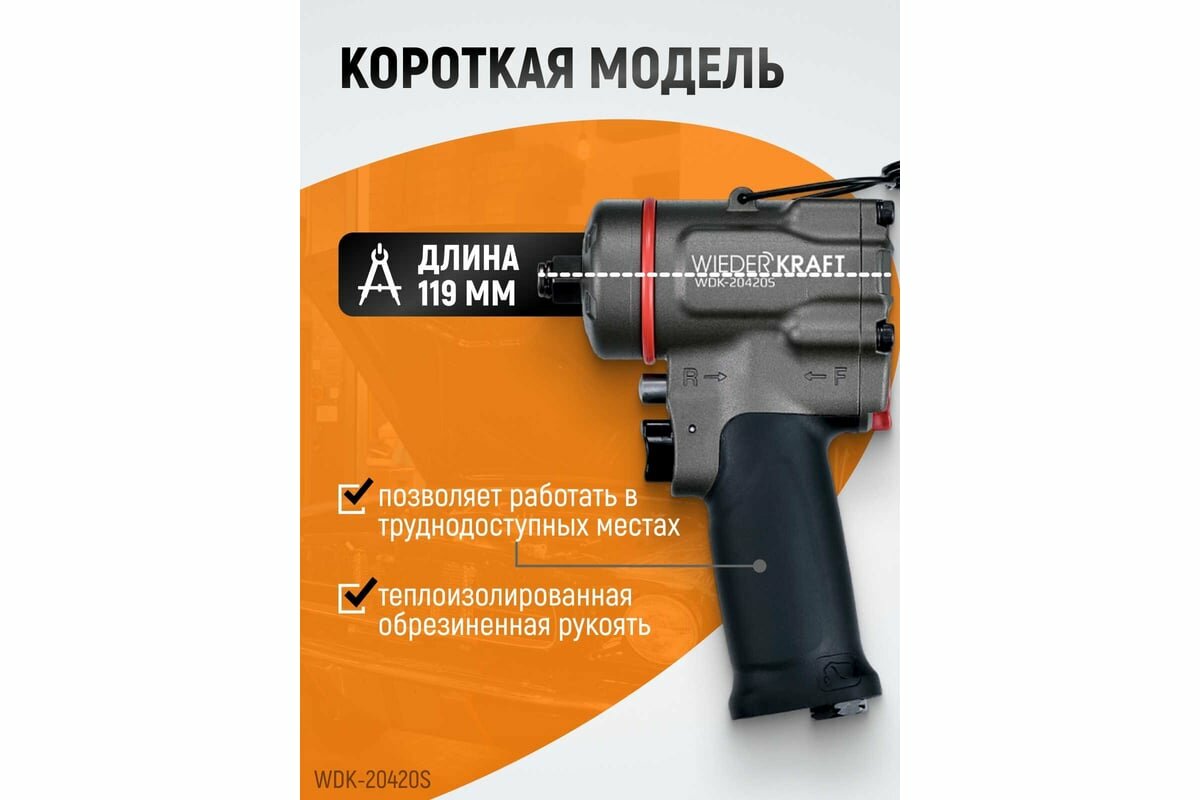 Купить Гайковерт компактный пневматический ударный 1/2", 1200 Нм WIEDERKRAFT WDK-20420S