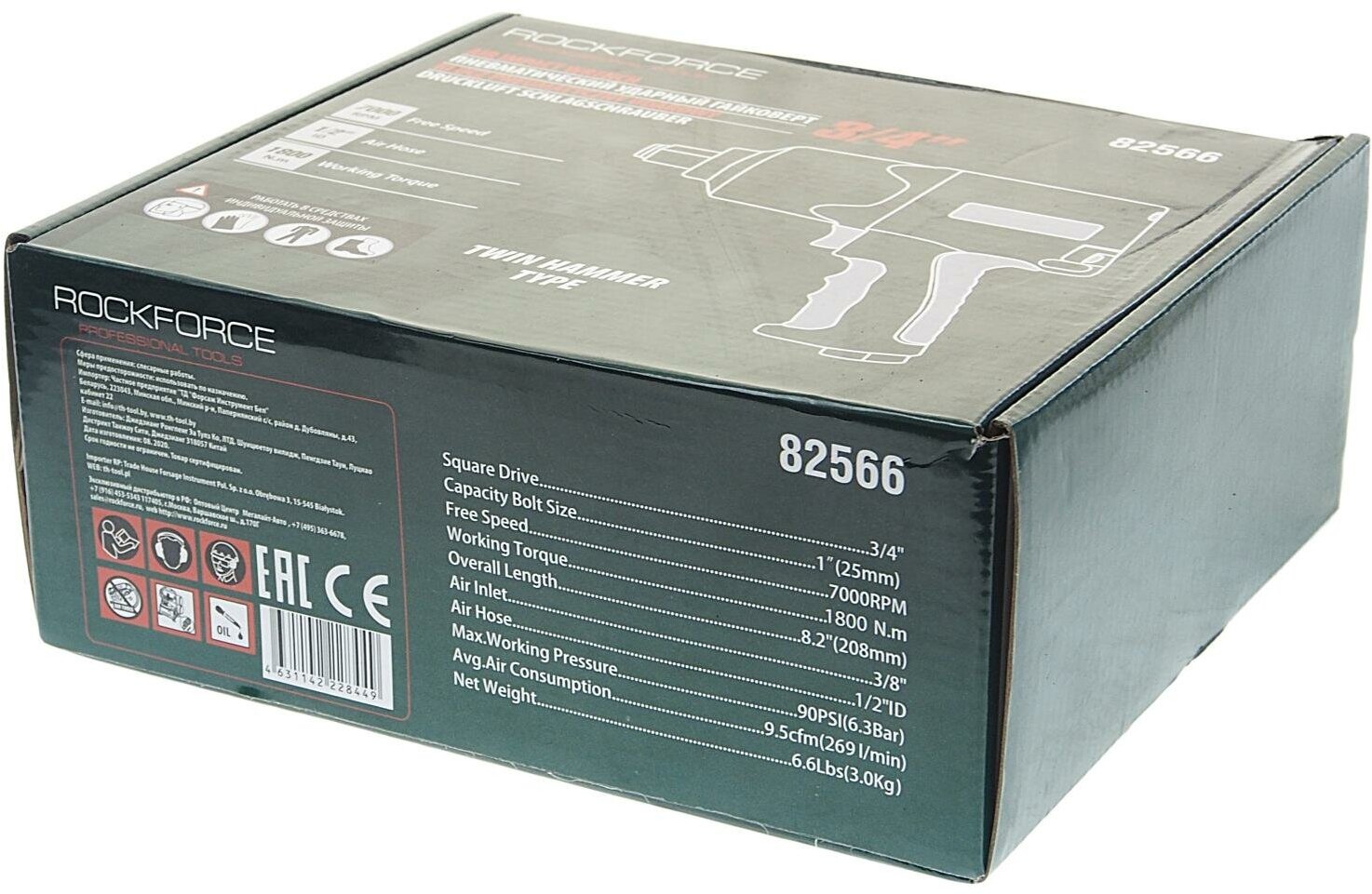 Купить Пневмогайковерт RF-82566: 3/4''DR ударный "Twin Hammer" с реверсом и регулировкой усилия (1800Hм, 7000 об/мин,6.3bar,269л/мин,вес 3кг) ROCKFORCE /1/8