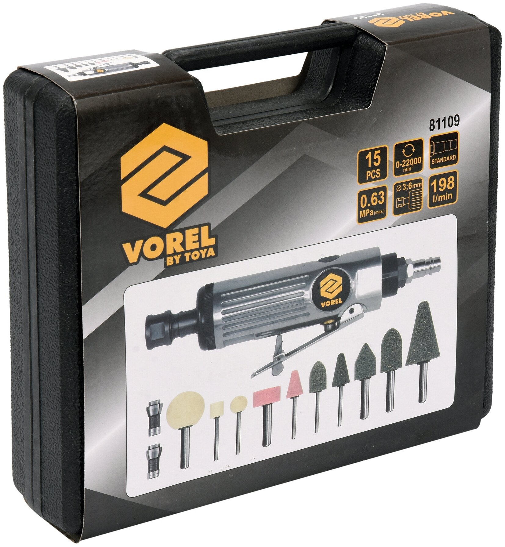 Купить VOREL Пневматическая шлифмашина прямая с аксессуарами пластиковый кейс 81109
