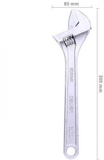 Разводной ключ Deli Dl012a 300мм, диапазон регулировки 0-36мм, инструментальная сталь, хромированная .