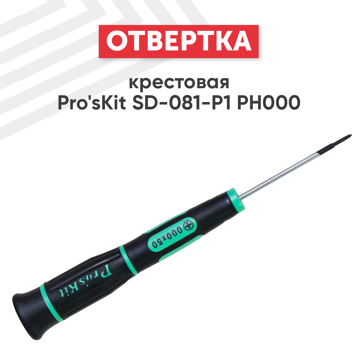 Отвертка крестовая Pro'sKit SD-081-P1/SD-084-P1 (PH000) антистатическая прецизионная (ручной инструмент), SD-081-P1