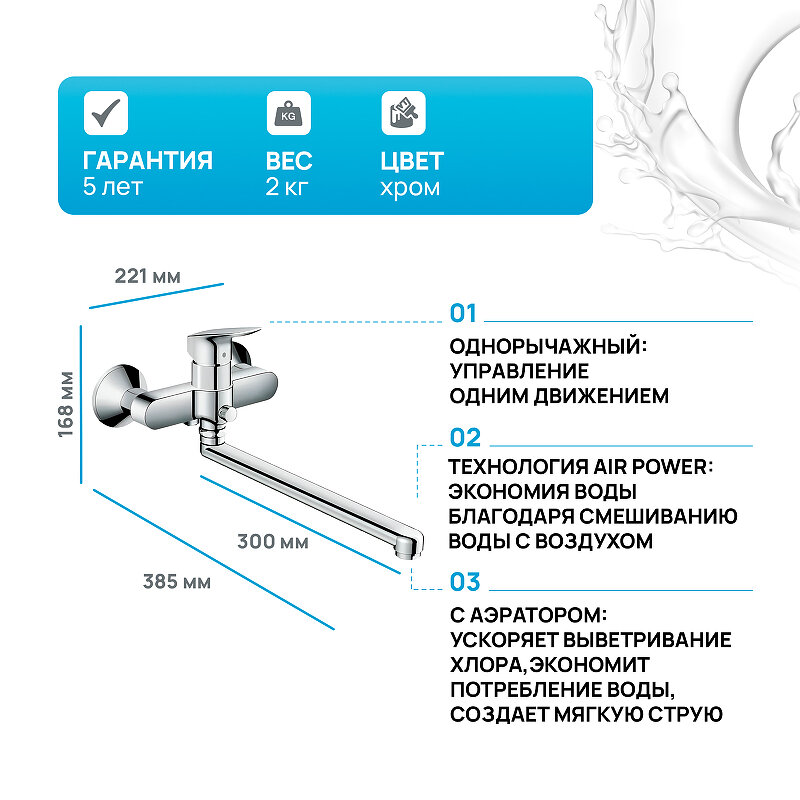 | Длина излива | 300 мм |
