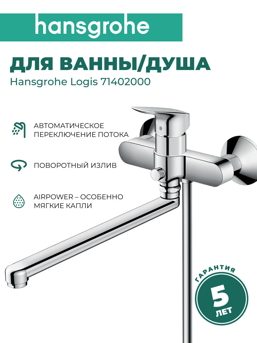 Смеситель Hansgrohe Logis для ванны и душа 71402000 с длинным изливом