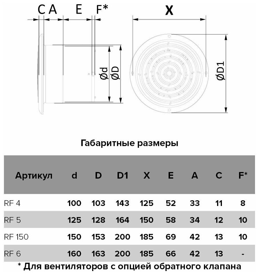 RF 4C, вентилятор накладной c обратным клапаном, D100