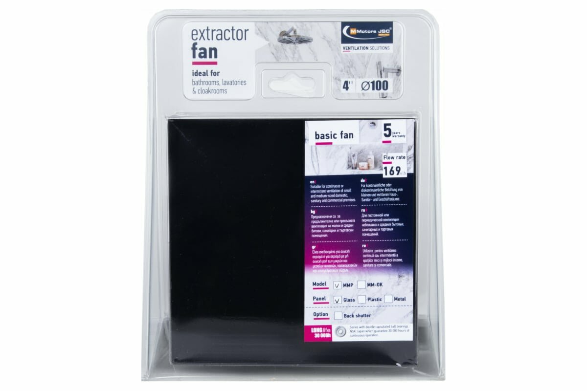 Купить Вытяжной вентилятор для ванной Mmotors сверхмощный MMP 169 м3/ч стекло, черный глянец
