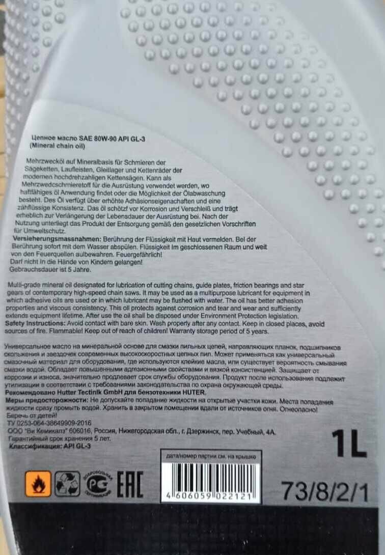 Масло цепное минеральное 80W90для техники Huter1л. интересное: