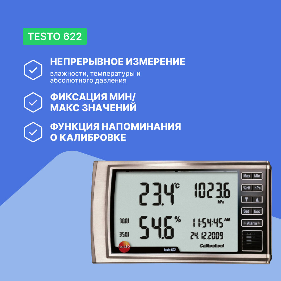 Термогигрометр Testo 622 с функцией отображения давления c поверкой