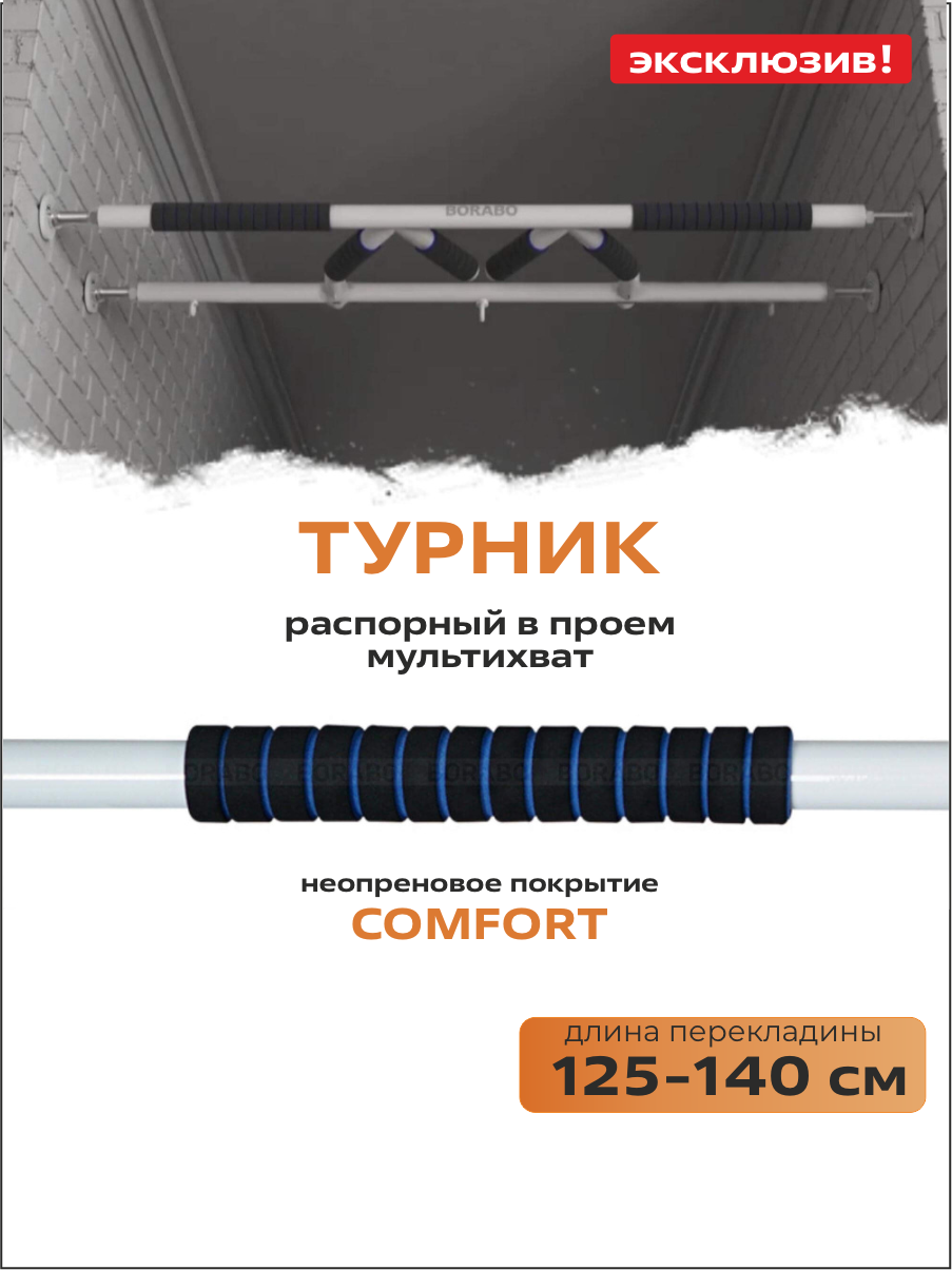 Турник распорный мультихват в проем COMFORT 125-140 см интересное: