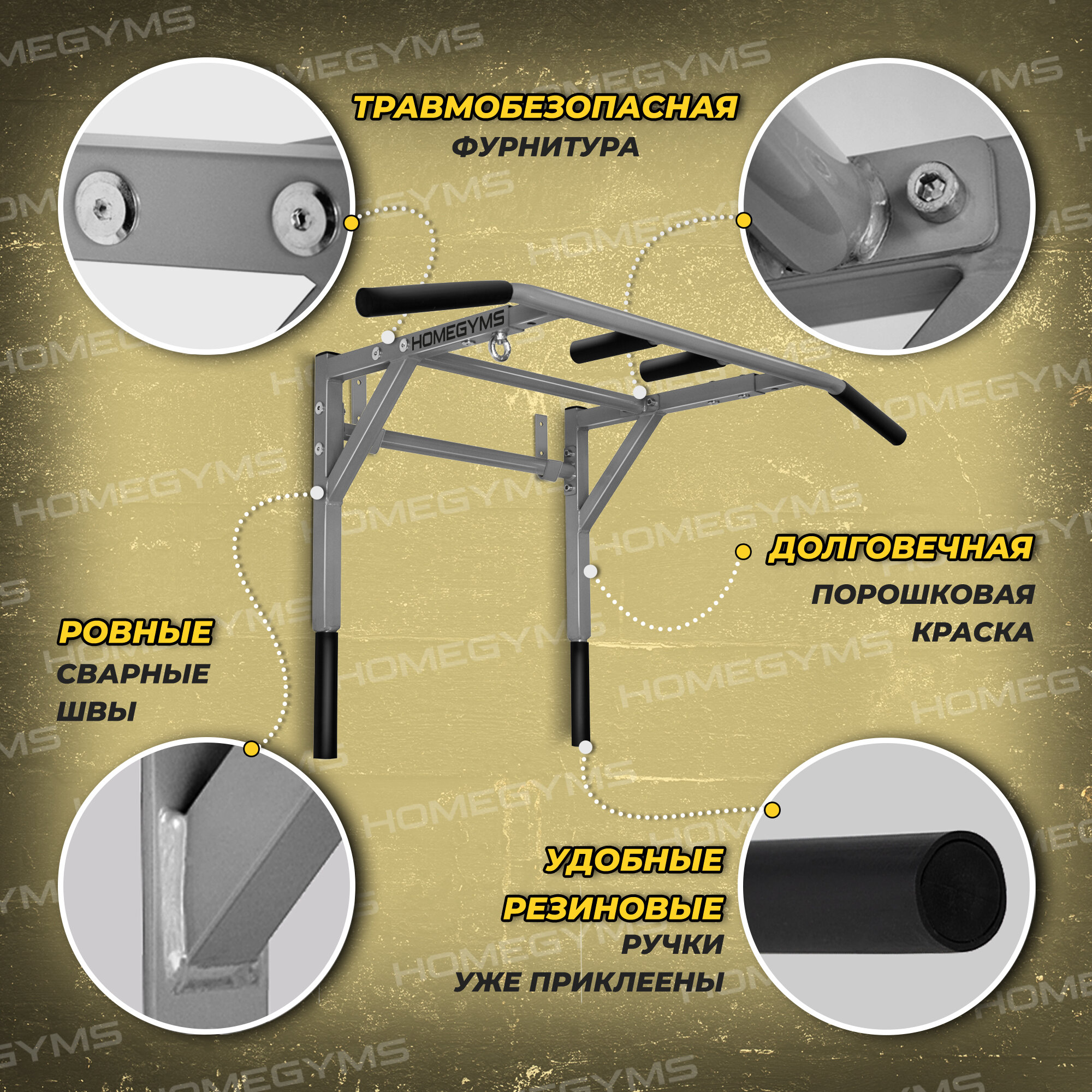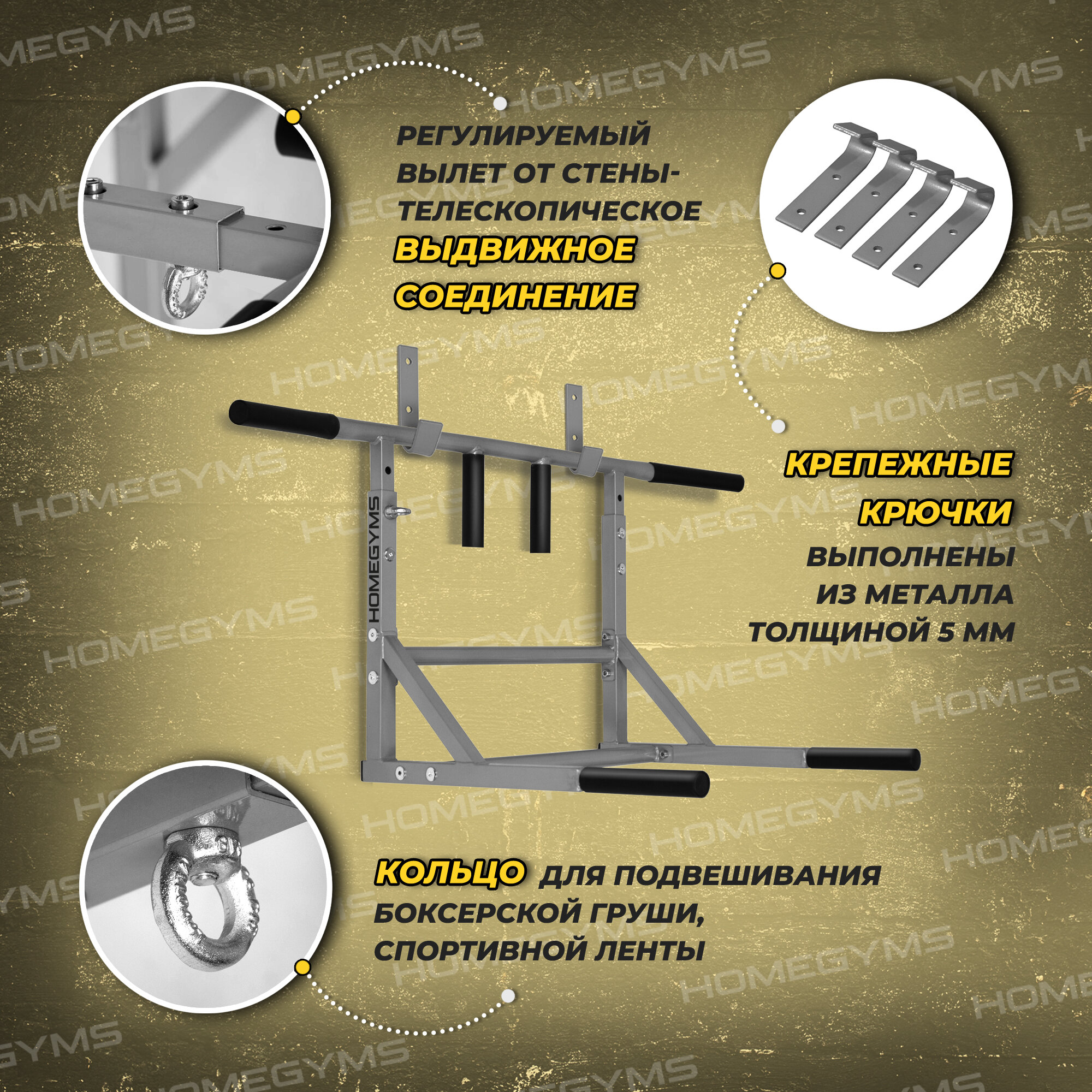 | Дополнительные функции | ручки для хвата / крепление для боксерской груши / разборный / разные положения для хвата / работа с прессом / противоскользящие ручки |